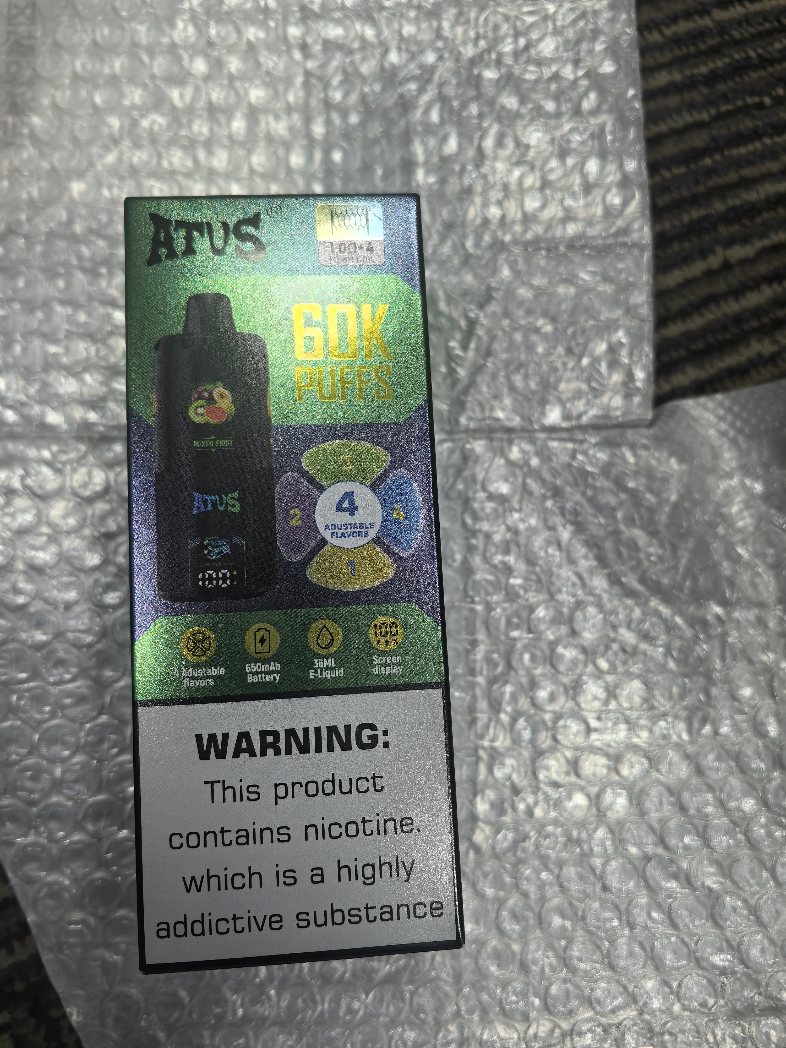 Ez az ATVS 60000 elsőrangú! Négy íz egyben, és a kijelzőn minden látható, amire szükséged van. A minőség is elsőrangú; nem csalódtam.